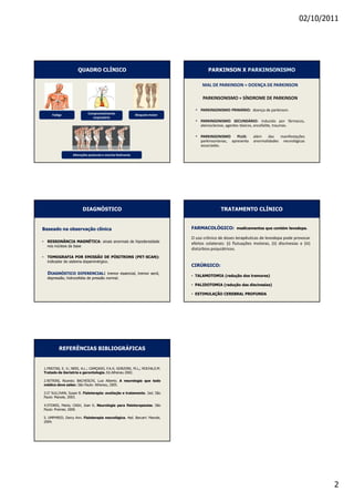 3) A diferenciação entre Parkinson e Parkinsonismo depende da evolução dos sintomas e da presença