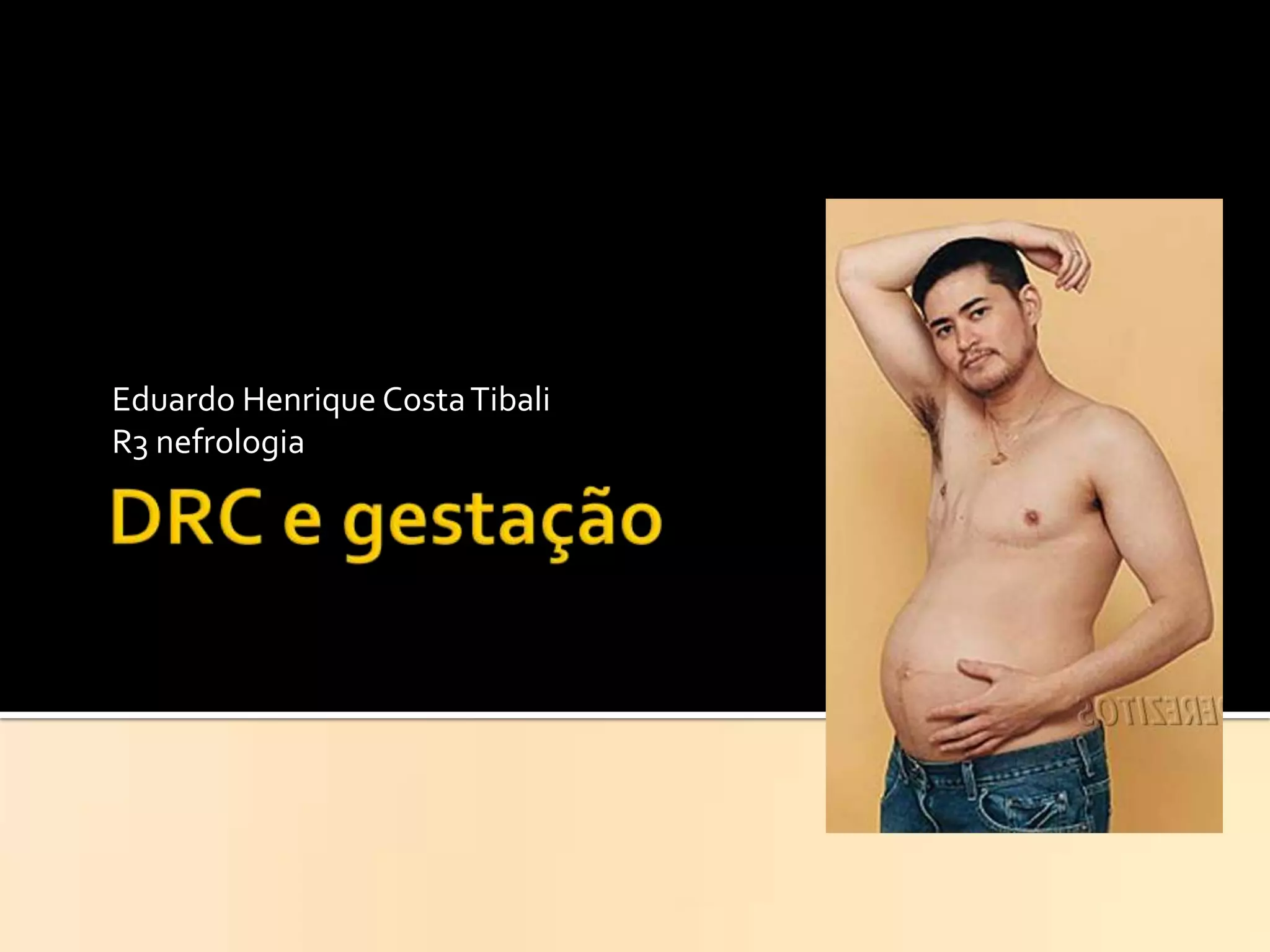 O documento aborda a relação entre gestação e doenças renais, destacando a frequência de gestações em mulheres em hemodiálise e as complicações associadas, como pré-eclâmpsia e abortos espontâneos. Também discute a importância do manejo da hipertensão e a necessidade de ajustes no tratamento dialítico durante a gravidez. Além disso, menciona fatores de risco e recomendações nutricionais para gestantes com Doença Renal Crônica (DRC).