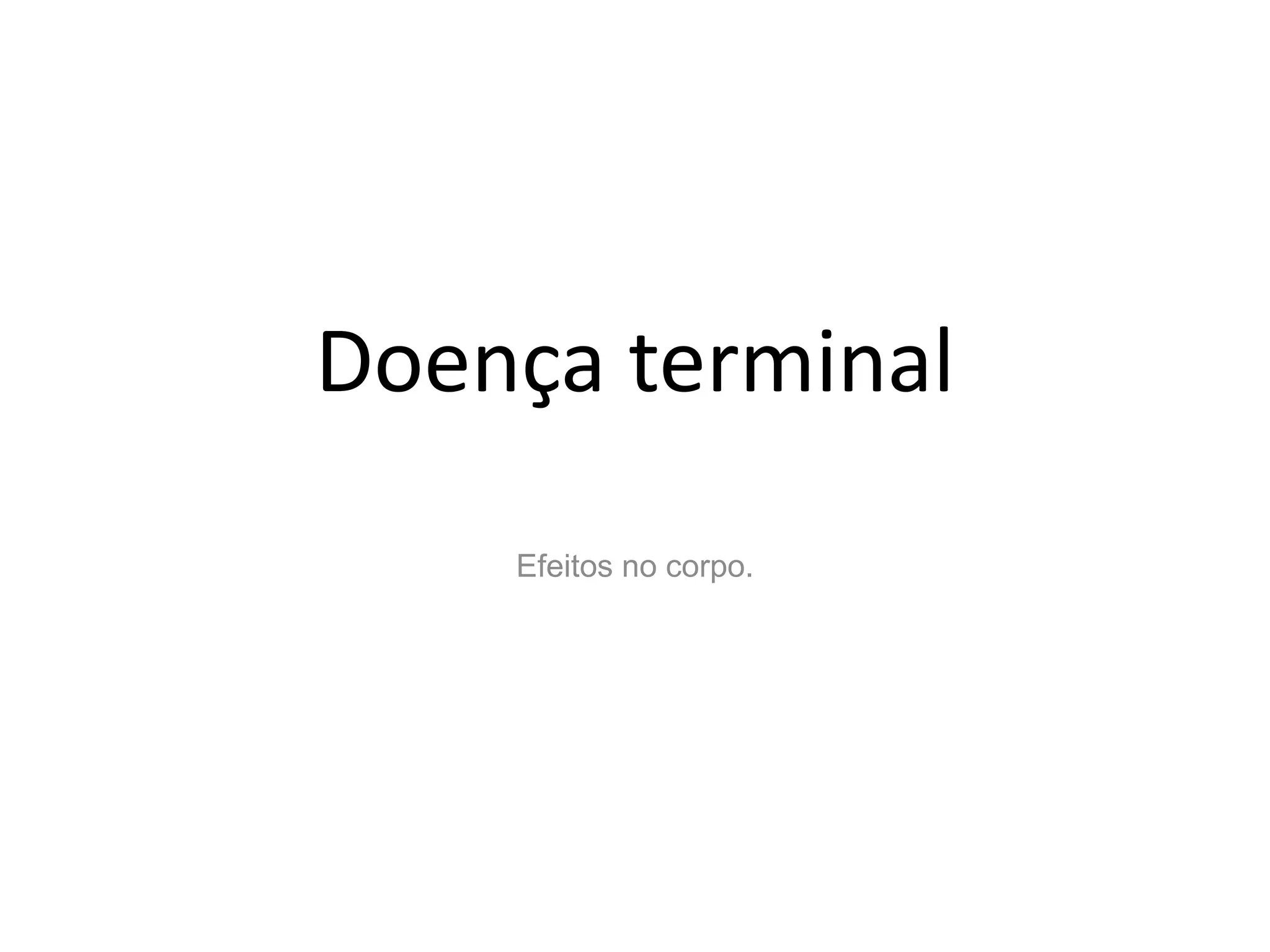 O documento discute o conceito de doença terminal, que se refere a um estágio avançado de doença em que não há mais possibilidade de recuperação da saúde e a morte é iminente. O documento também aborda os efeitos das doenças terminais no corpo e os cuidados paliativos prestados a esses pacientes.