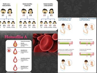 Este documento discute doenças genéticas. Ele explica que doenças genéticas são causadas por anomalias nos genes ou cromossomos. As doenças genéticas são classificadas em monogênicas, cromossômicas ou multifatoriais. Vários exemplos de doenças genéticas são fornecidos, incluindo anemia falciforme, distrofia muscular de Duchene e Alzheimer.