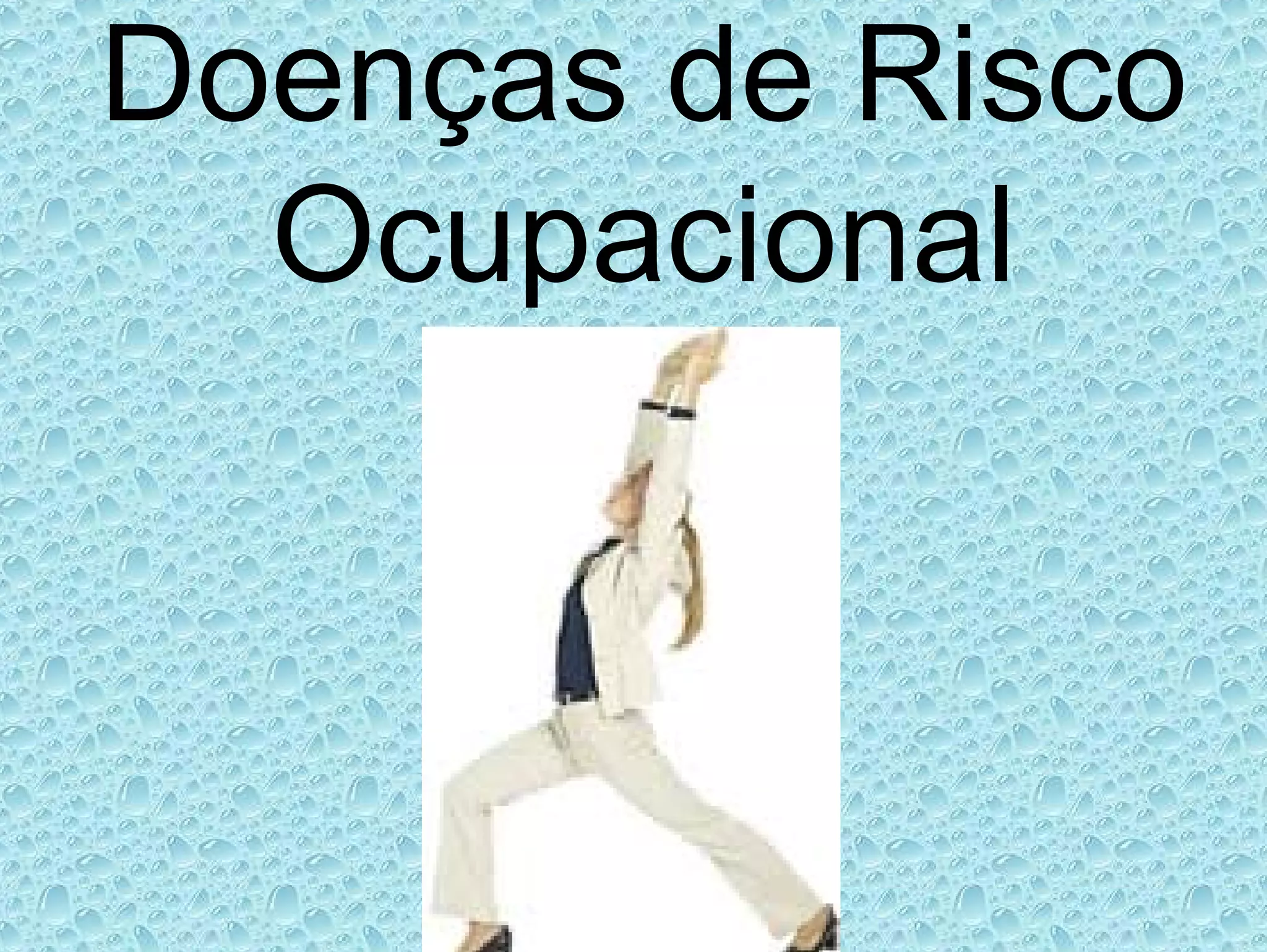 Este documento discute várias doenças ocupacionais comuns em profissionais da odontologia, incluindo doenças infecciosas como hepatite, AIDS e tuberculose, e lesões musculoesqueléticas causadas por esforço repetitivo. Detalha as formas de transmissão dessas doenças e medidas preventivas importantes como o uso de equipamento de proteção individual.
