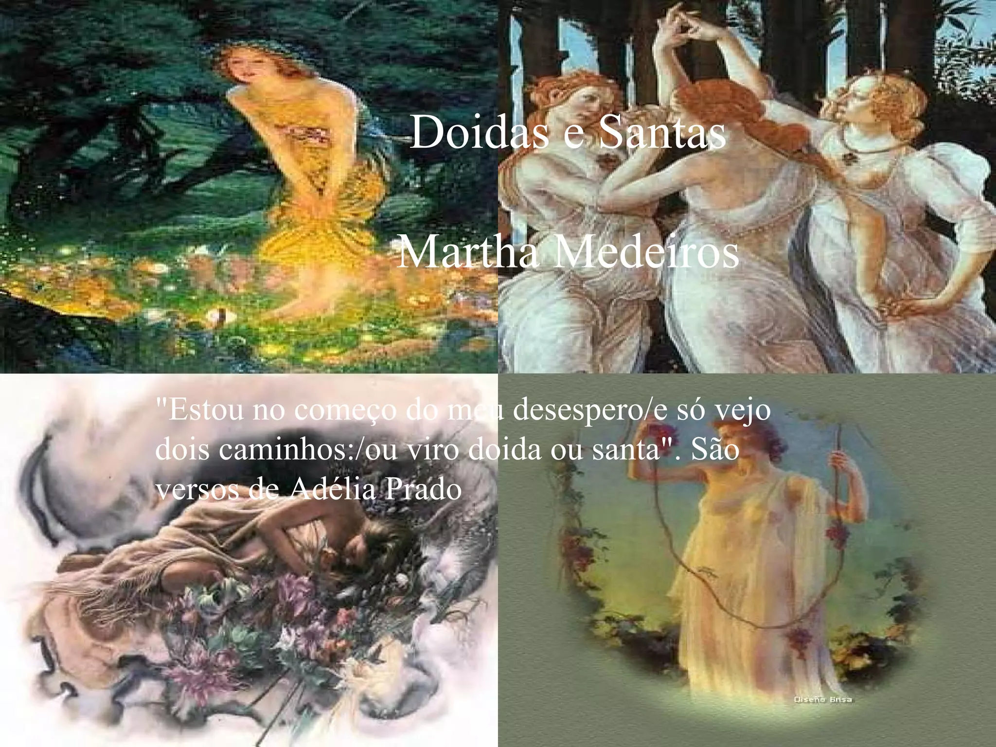 O texto discute a complexidade da natureza feminina, argumentando que todas as mulheres são "doidas" ou "cansadas" de alguma forma. A autora afirma que nenhuma mulher é perfeitamente "santa" e que a loucura faz parte da essência feminina de buscar amor e realização pessoal. Ela também critica a ideia de que algumas mulheres se tornam santas ao desistirem de viver intensamente.