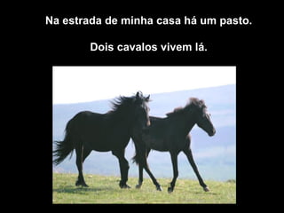Na estrada deminha casa há um pasto. Dois cavalos vivem lá.
