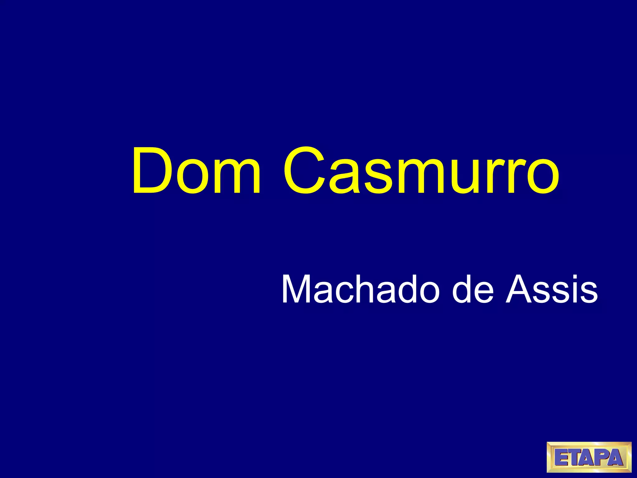 O documento descreve a infância de Bentinho, protagonista do romance Dom Casmurro de Machado de Assis. Apresenta sua família, composta principalmente por sua mãe e tio, e como ele conhece Capitu, por quem se apaixona. Também mostra a influência de José Dias sobre a família e seus planos para que Bentinho não entre para o seminário.
