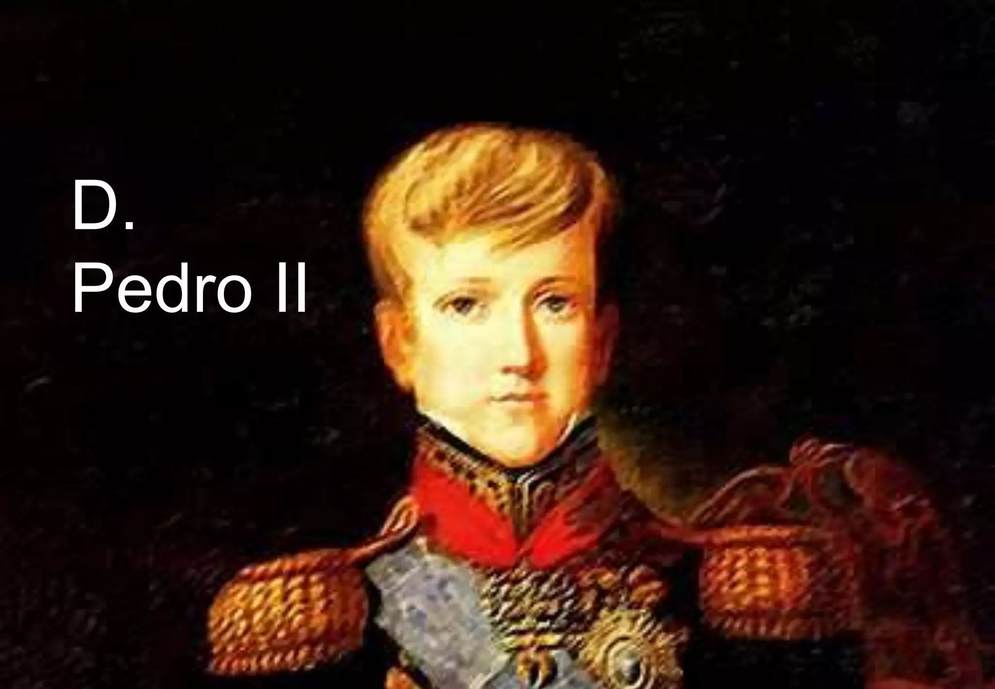 Pedro II assumiu o trono brasileiro aos 5 anos de idade e se tornou rei definitivo aos 14 anos. Durante seu reinado, a economia brasileira cresceu com a produção e exportação de café. Ele realizou eleições controversas em 1840 conhecidas como "Eleições do Cacete" para escolher novos políticos.
