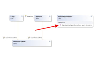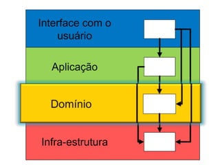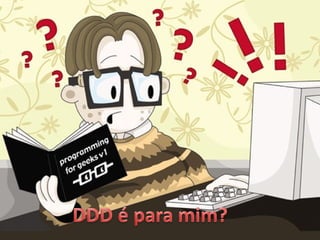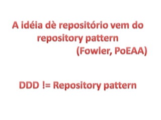 O documento aborda a importância do Domain-Driven Design (DDD) no desenvolvimento de software, enfatizando que o foco deve ser na lógica do domínio e na modelagem clara. Detalha conceitos como entidades, objetos de valor, agregações, serviços e repositórios, explicando suas funções e interações em um sistema. Reforça que modelos devem refletir o código e que a colaboração com especialistas em negócios é essencial para o entendimento do problema.