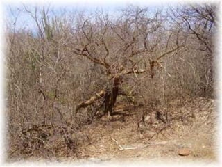 A Caatinga ocupa o Nordeste do Brasil e tem clima semiárido com chuvas irregulares, vegetação adaptada à seca, solos rasos e pedregosos, rios de regime periódico e relevo de superfície de erosão.