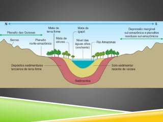 O documento apresenta os principais domínios morfoclimáticos e biomas do Brasil, incluindo o Domínio do Cerrado, dos Mares de morros, da Caatinga, da Araucária e das Pradarias e o Domínio Amazônico. É descrito os principais biomas brasileiros como a Amazônia, Mata Atlântica, Caatinga, Cerrado, Pantanal e as Matas de Araucária, assim como os biomas da zona costeira, manguezais e biomas psamófilos.