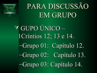 O documento discute a obra do Espírito Santo na vida do crente e os dons espirituais. Primeiro, distingue entre o "Dom do Espírito Santo" recebido na conversão e os "dons" concedidos para o serviço. Em seguida, explica a unção, selo e batismo com o Espírito Santo, esclarecendo que todo crente os recebe. Por fim, introduz o tópico dos dons espirituais.