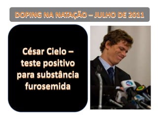 O documento discute vários casos de doping no esporte brasileiro entre 2007 e 2009, incluindo atletas pegos usando eritropoietina e testosterona. Também fornece detalhes sobre as cinco classes de substâncias dopantes (estimulantes, analgésicos narcóticos, agentes anabolizantes, diuréticos e hormônios) e seus efeitos colaterais.
