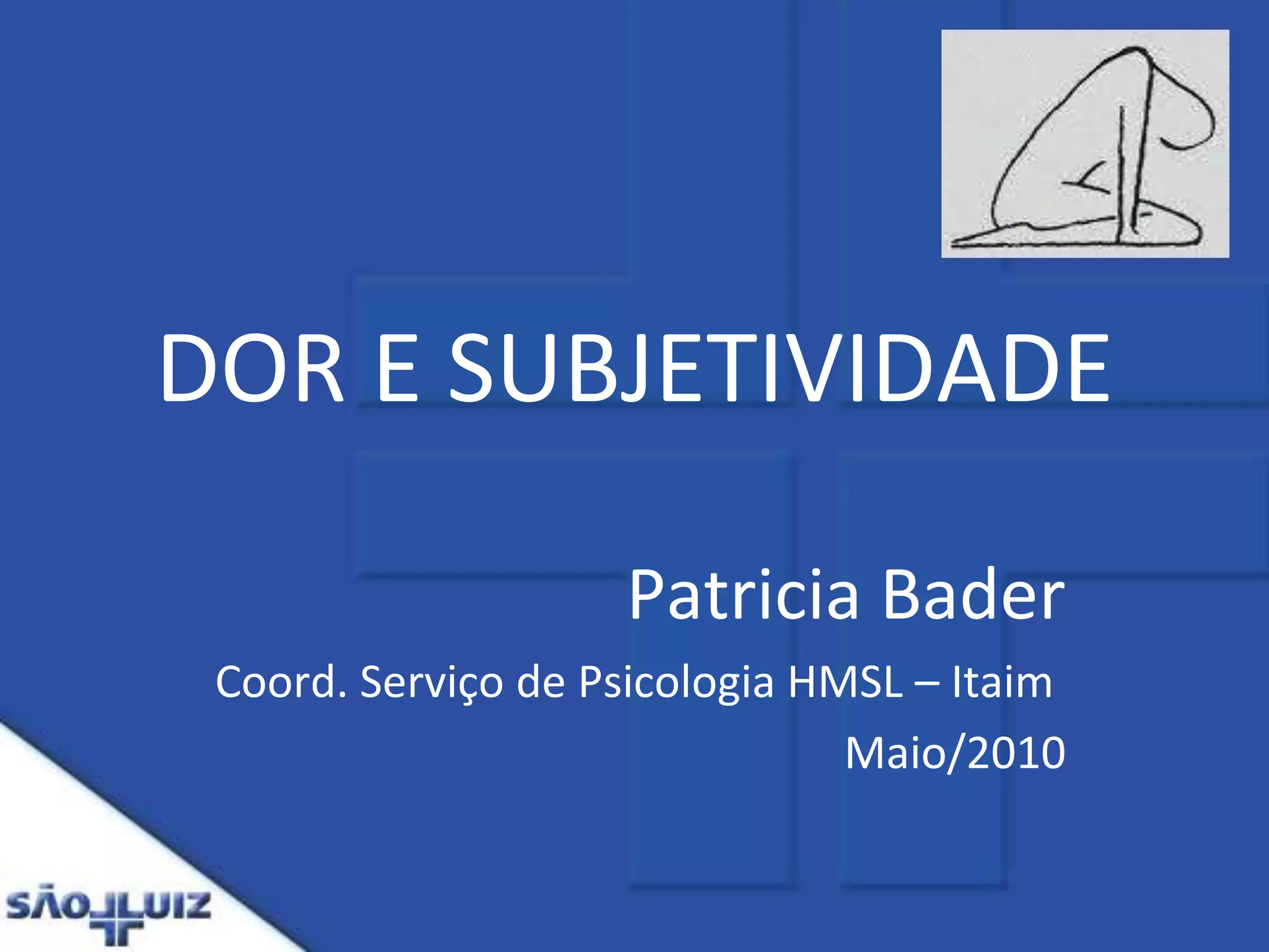 O documento discute a dor física e psicológica. A dor física depende da neurofisiologia e afeta o psiquismo. A dor também tem componentes psicológicos e sociais. A dor pode ser real sem lesão orgânica aparente. Memórias dolorosas podem ser reativadas, causando nova dor inexplicada. O eu tenta intensificar a dor da representação para lidar com a ameaça à integridade.