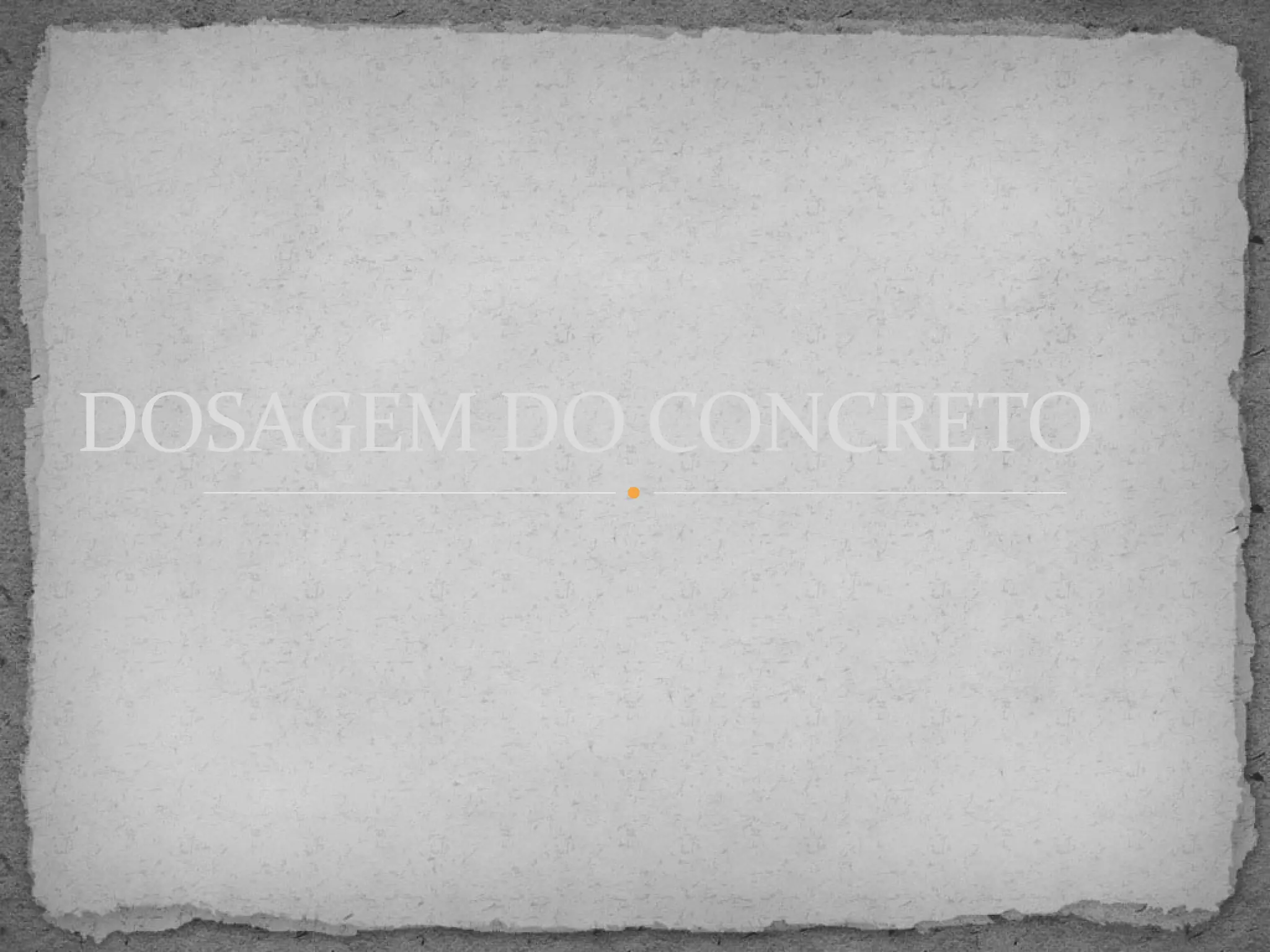O documento discute a dosagem do concreto, incluindo sua composição, características, traço e informações a serem consideradas na dosagem. Aborda também a resistência do concreto medida pelo fck, que indica a resistência característica à compressão após 28 dias.