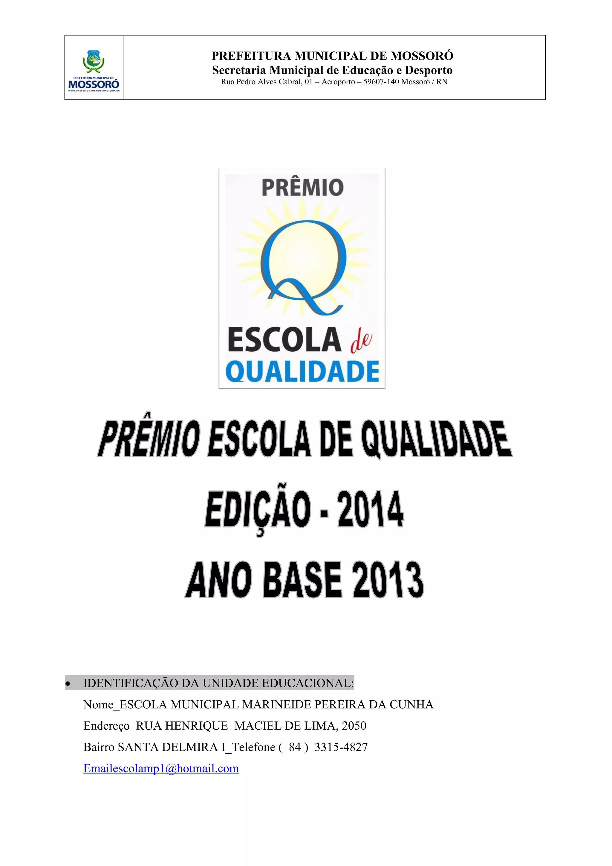 A Escola Municipal Marineide Pereira da Cunha oferece educação infantil, ensino fundamental e educação de jovens e adultos. Localizada em área de risco, atende cerca de 620 alunos das comunidades vizinhas. A escola vem melhorando seus índices educacionais a cada ano, como taxa de aprovação e alfabetização, e reduzindo a evasão e distorção idade-série. Projetos como Educação e Saneamento Básico promovem a participação da comunidade e melhoram a qualidade de vida dos al