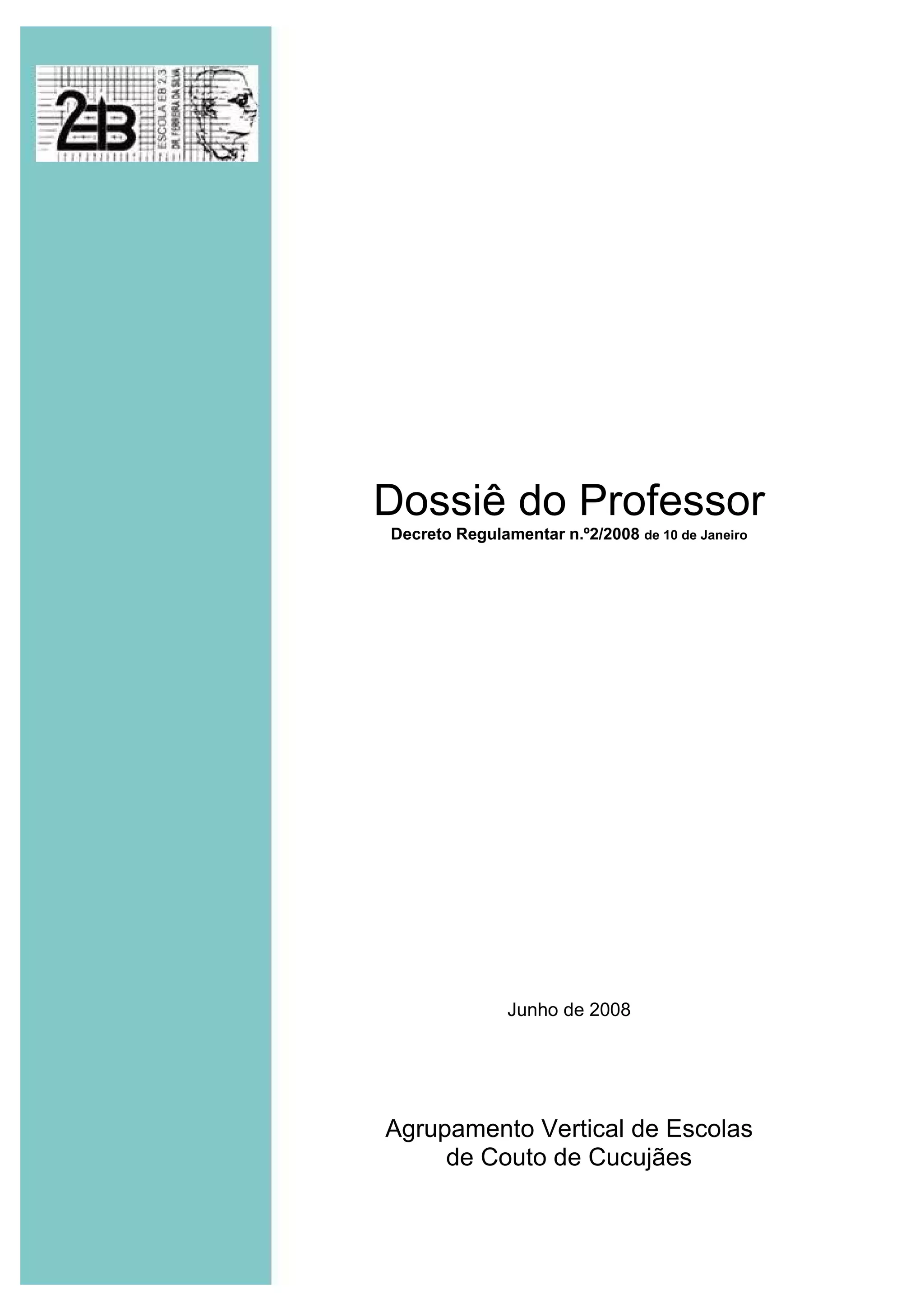 O documento descreve o dossiê do professor, que reúne documentos relevantes para a avaliação do desempenho docente. Inclui 10 separadores com documentos obrigatórios e facultativos sobre objetivos, assiduidade, serviço, preparação de aulas, avaliação de alunos, resultados, participação, formação e projetos de investigação.