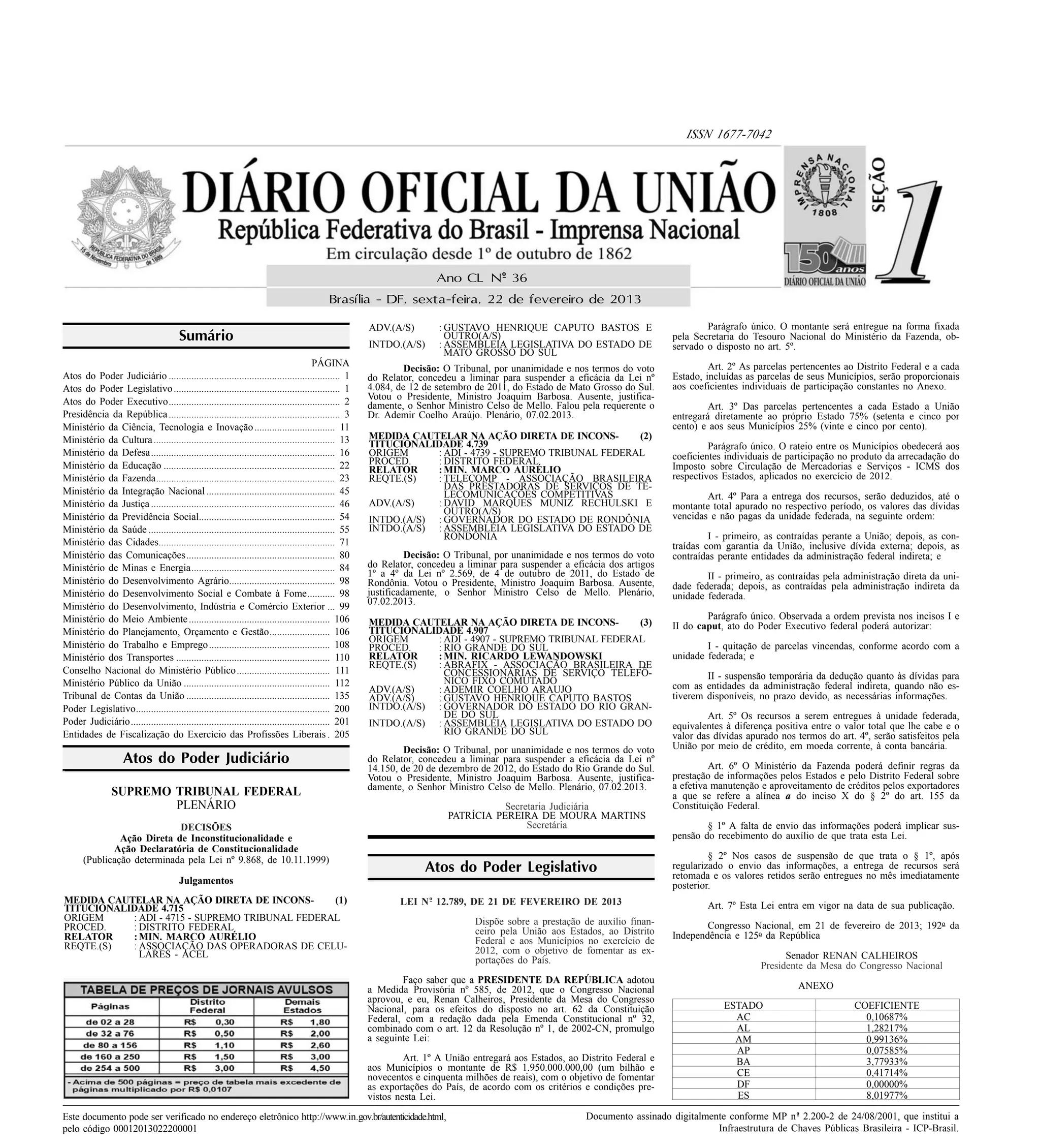 O documento aborda uma decisão do Supremo Tribunal Federal sobre a entrega de recursos da União aos estados, Distrito Federal e Municípios, visando fomentar exportações. A liminar concedida suspendeu a eficácia de certos artigos da lei estadual, determinando que os recursos seriam entregues conforme a participação de cada ente federativo. Também estabelece regras sobre a prestação de informações necessárias para o recebimento dos recursos.