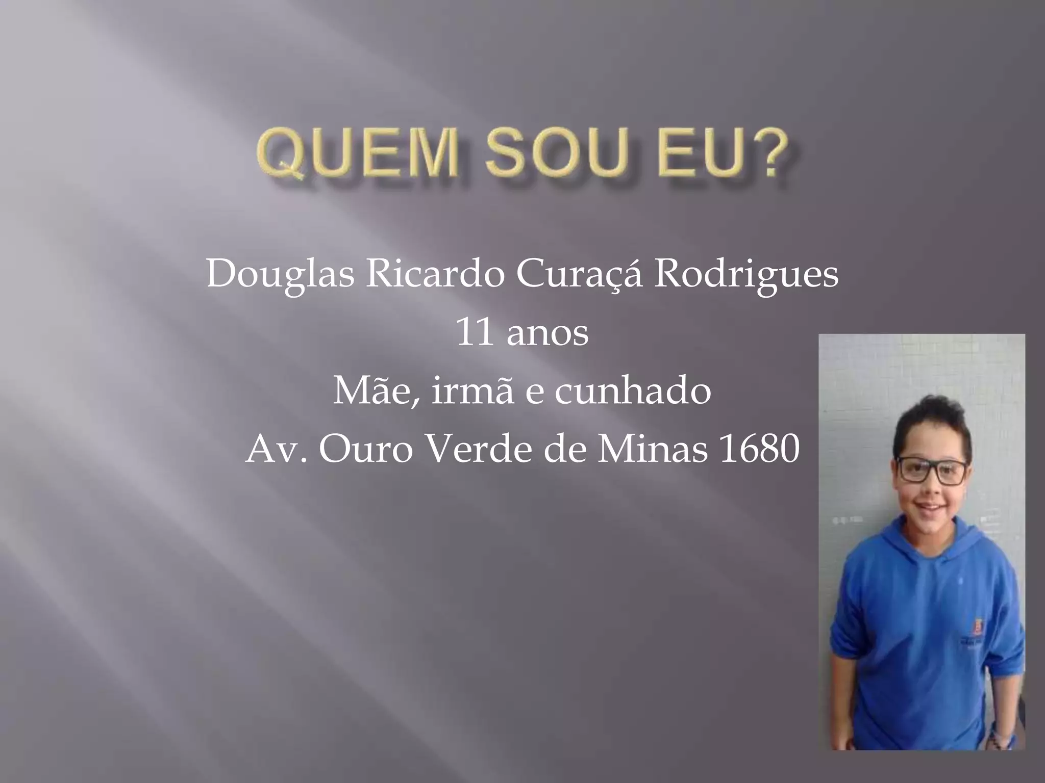 Douglas tem 11 anos, mora com a mãe e irmã. Gosta de cozinhar, jogar vôlei e navegar na internet. Seus melhores amigos são Daniella, Leonardo, Rafael e Marcos. Seus lugares preferidos são São Vicente, Natal e Salesópolis.