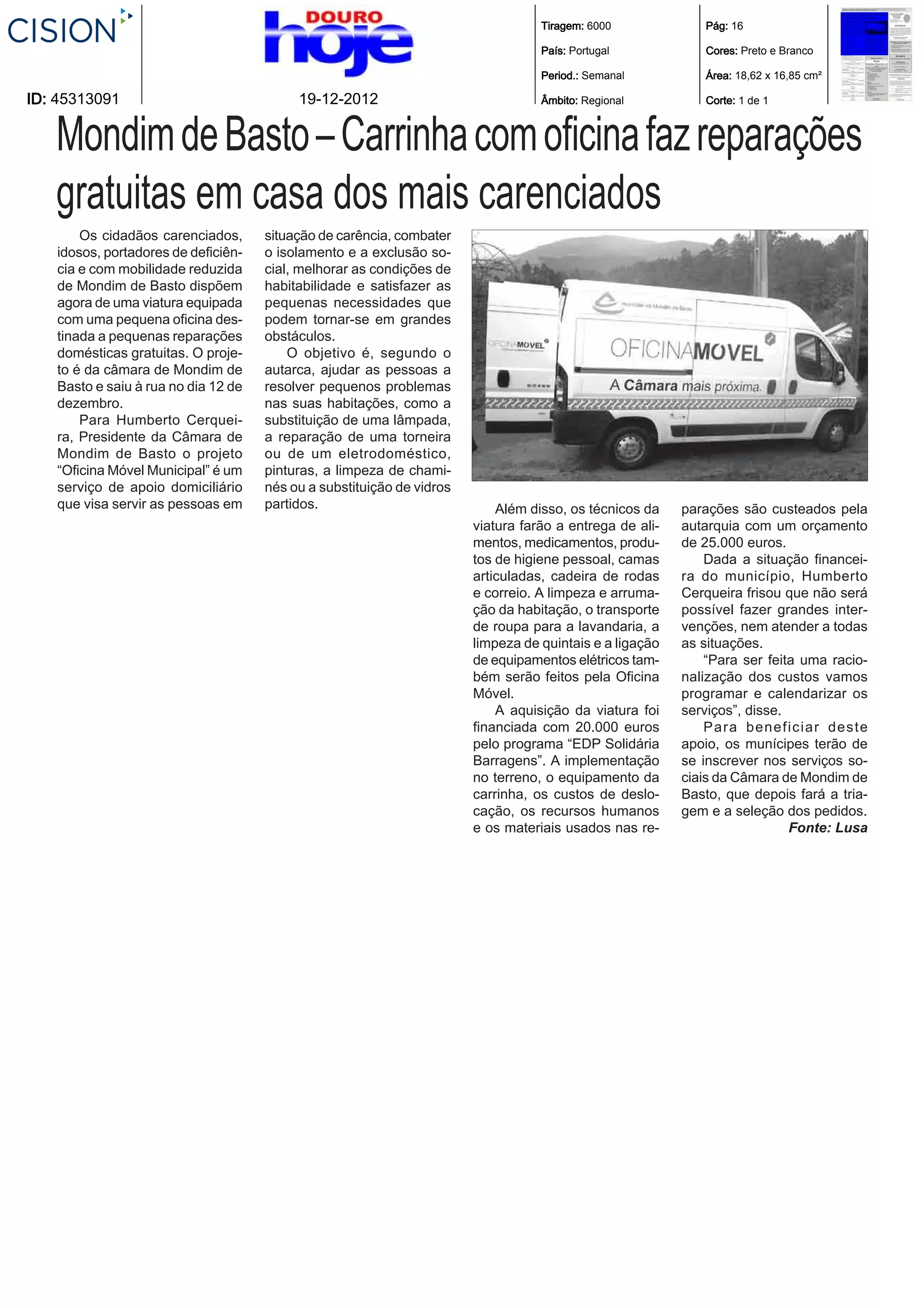 O município de Mondim de Basto lançou um projeto que fornece reparações domésticas gratuitas às pessoas carenciadas, idosas e com mobilidade reduzida através de uma carrinha equipada com uma pequena oficina. O objetivo é ajudar a resolver pequenos problemas nas casas como troca de lâmpadas ou reparação de torneiras. Além disso, a carrinha também entrega alimentos e medicamentos aos beneficiários.