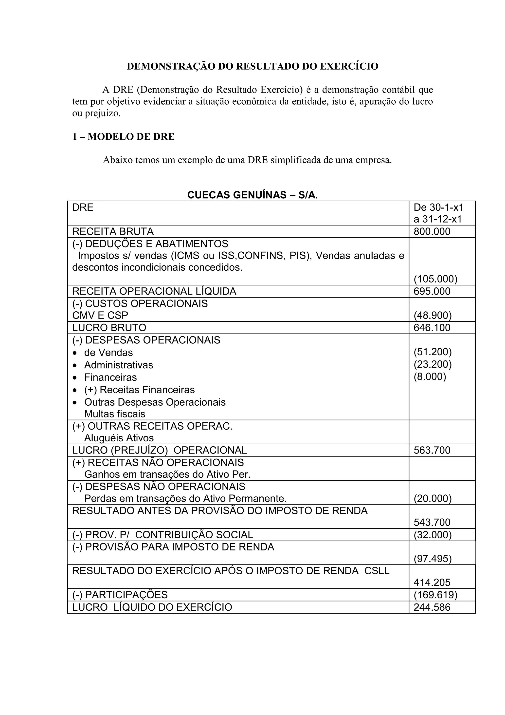 A DRE tem como objetivo evidenciar o lucro ou prejuízo de uma entidade. Ela mostra a receita bruta, deduções, receita líquida, custos, lucro bruto, despesas e resultados operacionais, não operacionais, antes e depois de impostos e participações, chegando ao lucro líquido final.