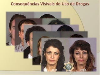 1. O documento apresenta um roteiro sobre drogas, abordando sua presença histórica, conceituação, tipos, usuários e intervenções.
