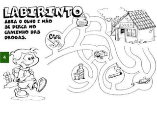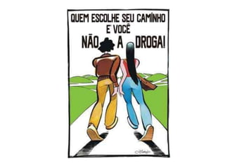 O documento discute a questão das drogas e sua relação com a violência e os problemas familiares, enfatizando a importância de abordar o tema na escola e em casa. Ele diferencia entre drogas lícitas e ilícitas, descrevendo os efeitos de várias substâncias, como cocaína, álcool, tabaco e maconha, e alerta sobre os riscos de dependência e consequências graves para a saúde. Além disso, o texto incentiva os jovens a rejeitar as drogas e a buscar orientação de adultos confiáveis.
