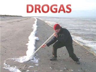 O documento discute vários tipos de drogas, incluindo seus efeitos, riscos à saúde e classificações. É fornecido detalhes sobre álcool, cola de sapateiro, LSD, mescalina, cogumelos e outras drogas.