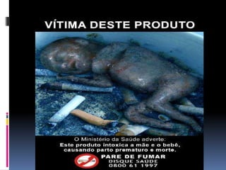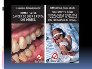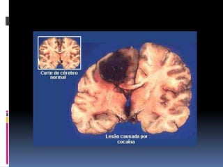 O documento discute os efeitos das drogas lícitas e ilícitas no corpo e na mente. Ele foca especificamente nos efeitos agudos e crônicos da maconha, cocaína e tabaco, incluindo seus riscos à saúde como câncer e dependência.