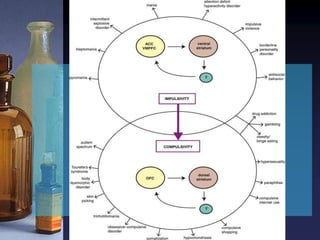 O documento discute as bases neurobiológicas do abuso de substâncias e comportamentos compulsivos. Apresenta os circuitos neurológicos envolvidos na via mesolímbica da recompensa e como as drogas agem sobre esses circuitos, levando à dependência. Também define conceitos importantes relacionados ao abuso e dependência e discute as neurobiologias específicas de diferentes classes de drogas.