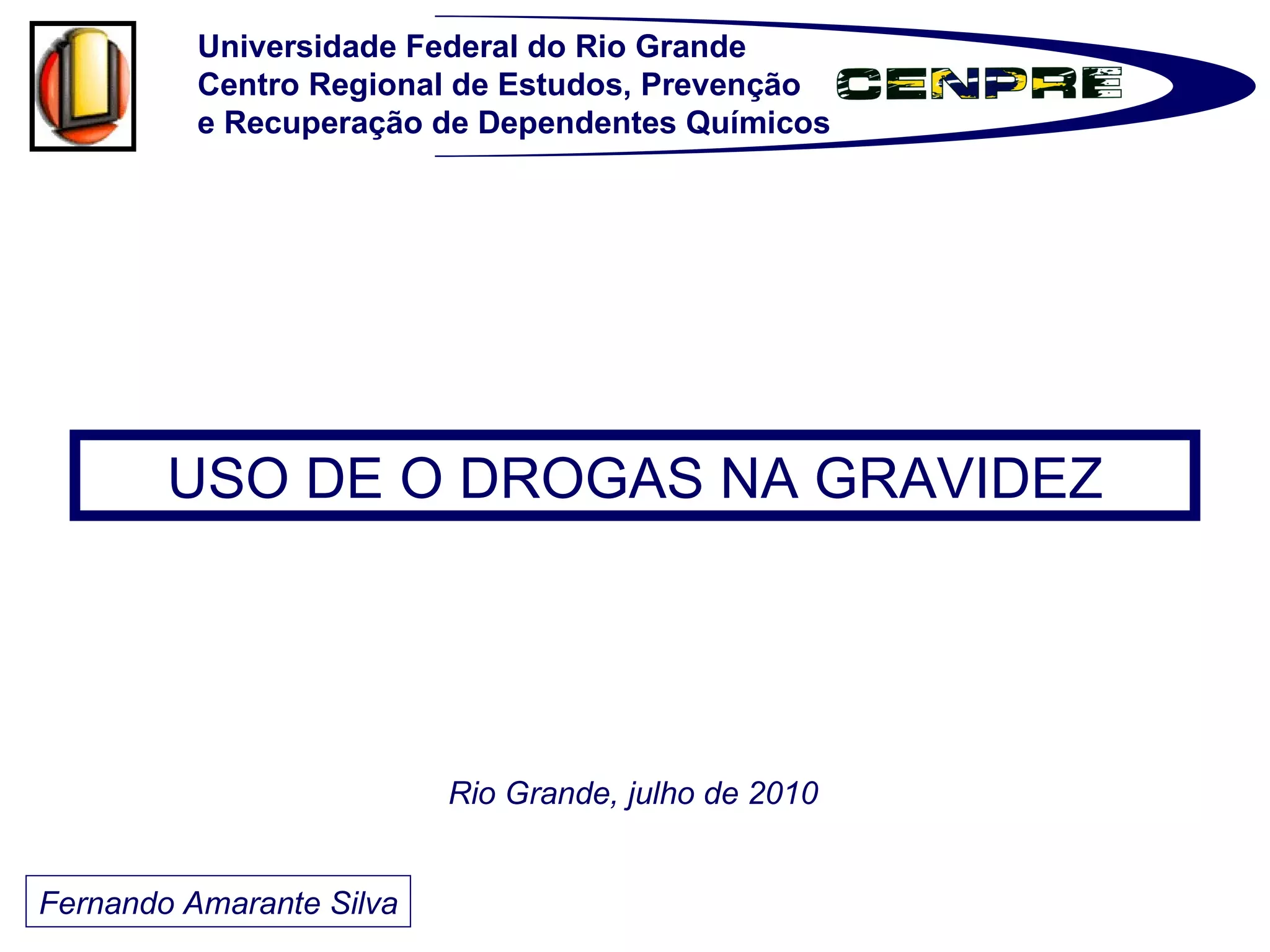 O documento discute os efeitos do uso de drogas durante a gravidez. Ele aborda especificamente os efeitos da cocaína, álcool e síndrome alcoólica fetal no feto, incluindo malformações, problemas de desenvolvimento e distúrbios neurológicos que podem ocorrer. O documento também fornece informações sobre classificação de drogas, mecanismos de dependência e fatores de risco associados ao uso de substâncias durante a gestação.