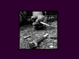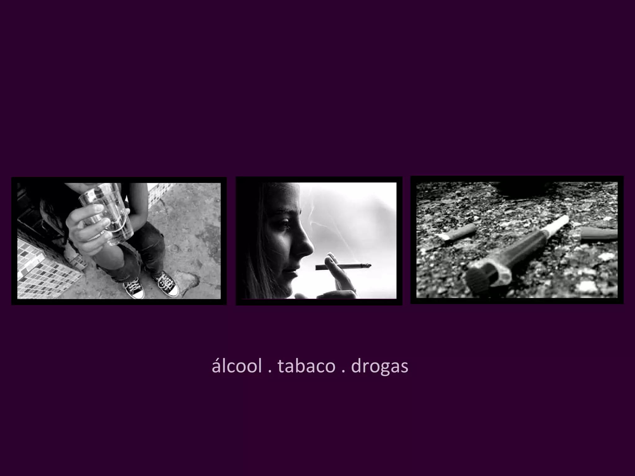 O documento aborda o consumo de álcool, tabaco e drogas entre os jovens, destacando o aumento do início do consumo de álcool na faixa etária de 10 a 12 anos e a associação entre o uso de substâncias e comportamentos de risco. A pesquisa da OMS indica que o abuso do álcool é um problema de saúde pública global, assim como o vício do tabaco, que pode resultar em um milhão de mortes no século XXI. Além disso, menciona a acessibilidade crescente das drogas ilícitas, especialmente a cannabis, destacando a tendência de aceitação entre os jovens.