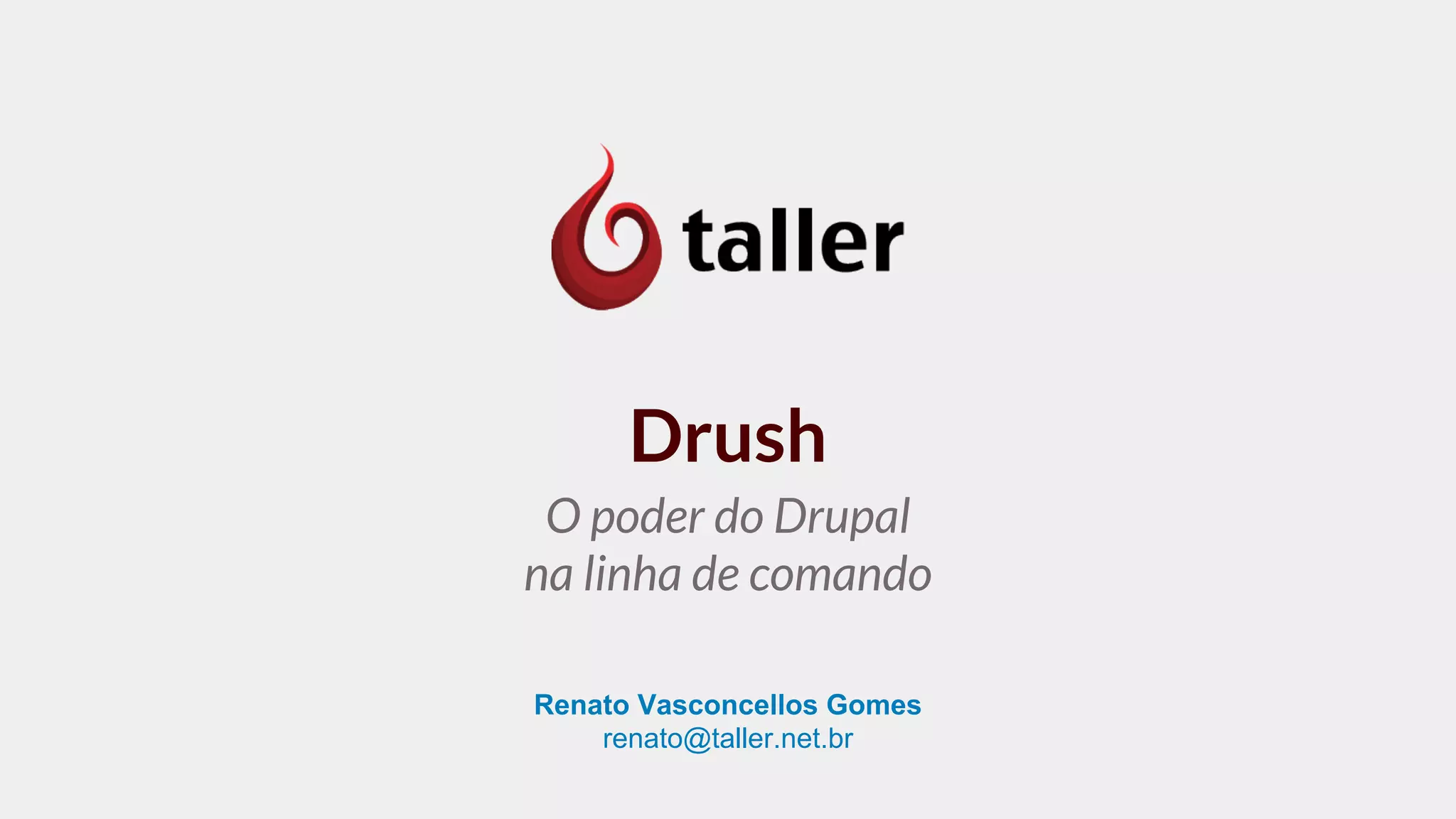Drush é uma interface de linha de comando para Drupal que aumenta a produtividade ao permitir executar tarefas como backups, atualizações de banco de dados e gerenciamento de sites remotamente. Ele oferece comandos básicos e personalizados para automatizar rotinas e pode ser instalado via Composer. A documentação e suporte estão disponíveis no site oficial e no IRC.