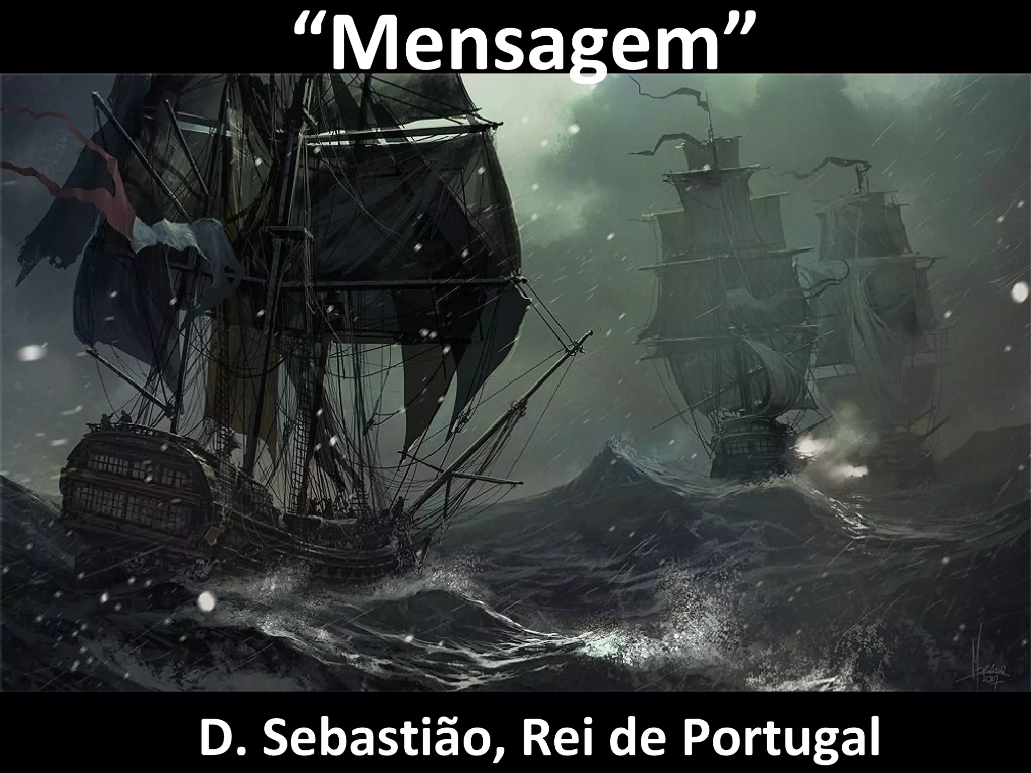 The poem discusses King Sebastian of Portugal who died in the Battle of Alcácer Quibir in 1578. It portrays Sebastian as a "madman" who lived not for death but to fulfill his dreams of continuing Portugal's expansion, and calls on the Portuguese people to carry on his vision.