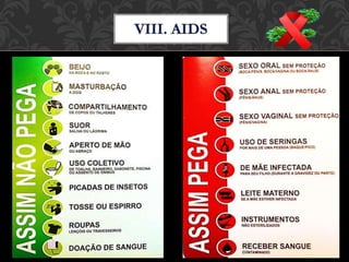O documento discute as Doenças Sexualmente Transmissíveis (DSTs), mencionando que elas são muito frequentes no Brasil e causam graves problemas de saúde. Detalha alguns dos principais tipos de DST, como sífilis, câncer mole, herpes e HIV/AIDS, assim como seus sintomas, formas de transmissão e tratamentos. Reforça a importância da prevenção e do diagnóstico precoce destas doenças.
