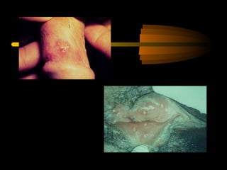 O documento fornece informações sobre várias Doenças Sexualmente Transmissíveis (DSTs), descrevendo seus sintomas, formas de transmissão e tratamentos. As DSTs discutidas incluem câncer mole, candidíase, condiloma, gonorréia, granuloma, tricomoníase, herpes, linfogranuloma, sífilis e AIDS. O documento enfatiza a importância de procurar tratamento médico imediato para DSTs e de informar os parceiros sexuais sobre qualquer infecção.