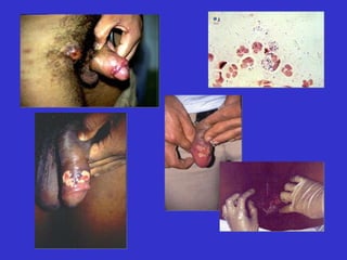 O documento discute as doenças sexualmente transmissíveis (DST) no Brasil, fornecendo estatísticas, definições, sintomas, diagnóstico e tratamento das principais DST, incluindo gonorreia, sífilis e doenças associadas.
