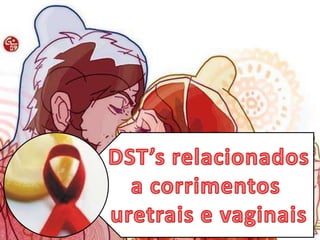 O documento discute várias infecções sexualmente transmissíveis, incluindo corrimento vaginal, clamídia, tricomoníase, vaginose bacteriana e gonorreia. Detalha sintomas, causas, diagnóstico e tratamento de cada condição.