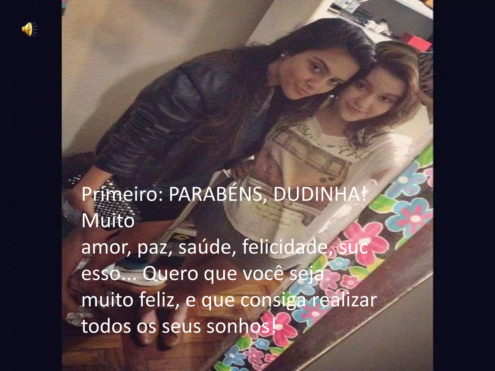 Este documento é uma carta de parabéns para uma amiga chamada Dudinha que está fazendo 15 anos. A autora da carta agradece a amizade delas, diz que Dudinha é uma pessoa maravilhosa por dentro e por fora, e que sua amizade é muito importante. Ela deseja todo o sucesso, felicidade e saúde para Dudinha.