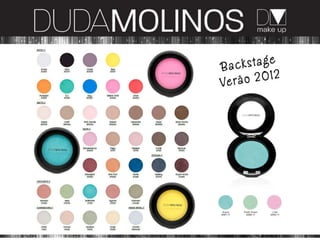 Duda Molinos é um maquiador profissional brasileiro com 25 anos de carreira. Ele desenvolveu uma linha completa de maquiagem, incluindo bases, corretivos, blushes, sombras, delineadores, máscaras de cílios e batons, entre outros produtos. Sua linha é formulada com ingredientes de qualidade e texturas leves que proporcionam acabamento natural e alta pigmentação.