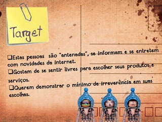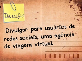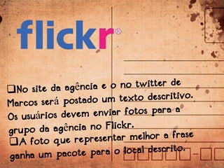 Marcos é um mochileiro de 27 anos que escreve sobre suas viagens e usa as redes sociais para divulgar seus textos, fotos e vídeos. Através de uma agência, ele irá divulgar destinos oferecidos por ela e interagir com usuários. Quem segue Marcos pode concorrer a prêmios como acessórios de viagem e pacotes de viagem.