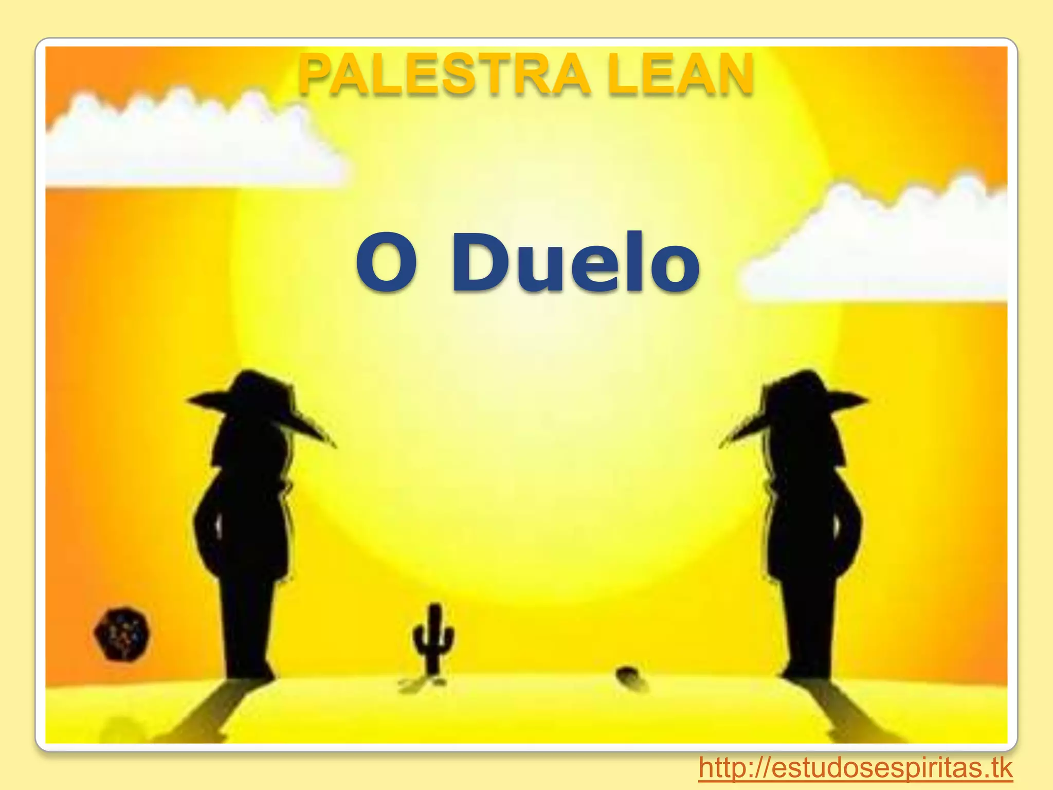 O documento discute o tema do duelo, uma prática antiga de resolver disputas através da força e violência, e apresenta perspectivas espíritas contrárias a essa prática. Kardec, Emmanuel e Joanna de Ângelis condenam o duelo e defendem a não violência. Cita-se o exemplo de Jesus que pregava o perdão e a oferta da outra face.
