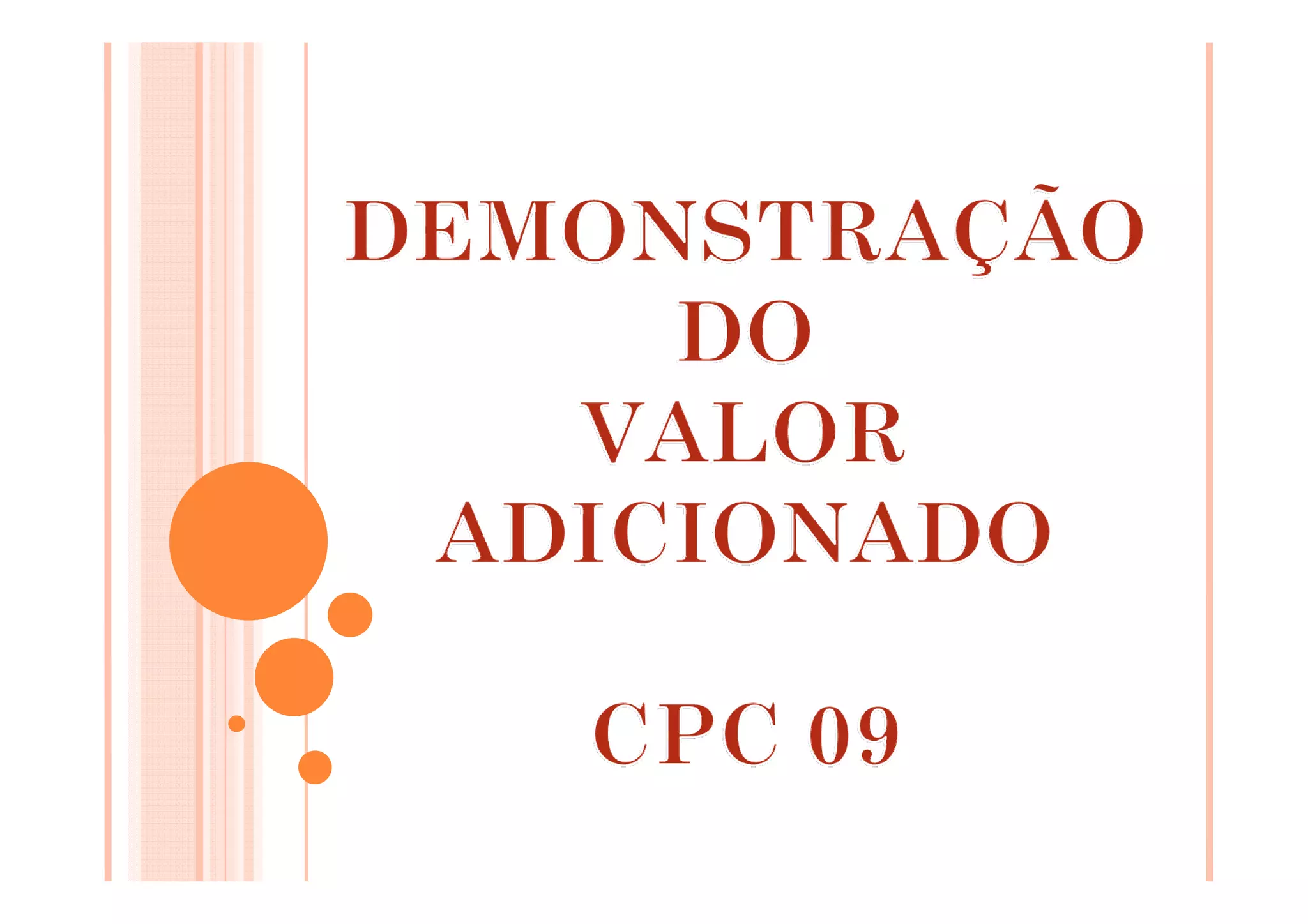 O documento descreve o que é a Demonstração do Valor Adicionado (DVA), definindo-a como um relatório contábil que evidencia a riqueza gerada e distribuída por uma empresa entre seus diferentes stakeholders. Apresenta também os principais agentes econômicos envolvidos na geração e distribuição do valor adicionado de uma organização e alguns pontos relevantes sobre a elaboração da DVA.