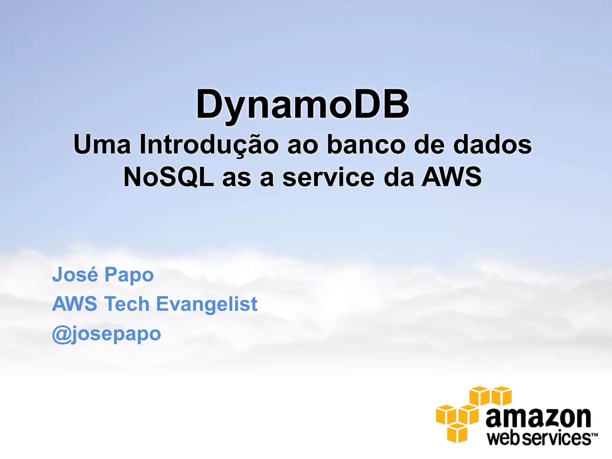 Este documento fornece uma introdução ao DynamoDB, o banco de dados NoSQL da AWS. Ele descreve os principais recursos e benefícios do DynamoDB, incluindo seu modelo de dados flexível, escalabilidade simples, desempenho consistente e previsível, e facilidade de uso sem a complexidade da administração. Além disso, discute como o DynamoDB pode ser usado com o Hadoop e EMR da AWS para análises e consultas complexas.