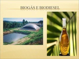 O documento discute o biogás, um combustível renovável produzido a partir da decomposição de matéria orgânica por bactérias. É extraído de resíduos como esterco e lixo orgânico e gera como subproduto biofertilizante. No Brasil é usado principalmente para saneamento rural e pode ajudar a reduzir o desmatamento e emissões de gases de efeito estufa quando usado no lugar da lenha.