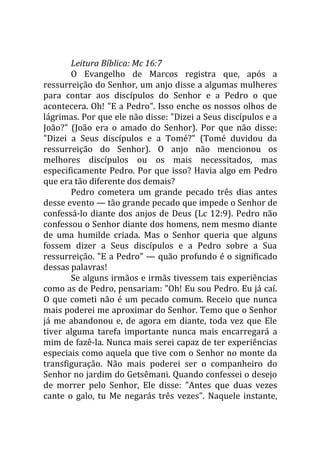 O documento descreve como Pedro negou Jesus três vezes antes de sua crucificação, mas como Jesus ainda assim se lembrou especificamente de Pedro após sua ressurreição. Isso mostra que, assim como Jesus não abandonou Pedro apesar de seu pecado, Ele também não abandonará aqueles que tropeçam e caem.