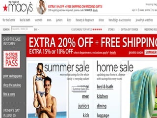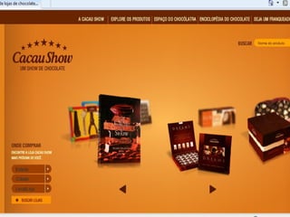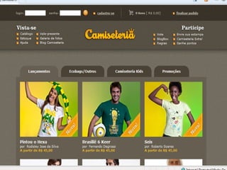 O documento discute o cenário do e-commerce no Brasil e no mundo. Ele destaca que o e-commerce no Brasil cresceu mais de 1000% nos últimos 7 anos, com faturamento de R$14,8 bilhões em 2010. As categorias mais vendidas online são eletrodomésticos, livros, saúde/beleza e informática. A maioria dos e-compradores brasileiros tem entre 25-49 anos e classe social A ou B.