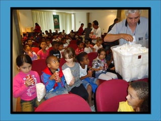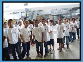 O documento descreve vários projetos realizados pela escola E. E. FRANCISCO BRASILEIRO em parceria com empresas como Infraero, Petrobrás e FedEx. Os projetos incluíram atividades sobre cinema, jardinagem, meio ambiente, segurança ao redor do aeroporto e judô. O ano letivo foi encerrado com uma festa de final de ano na escola.