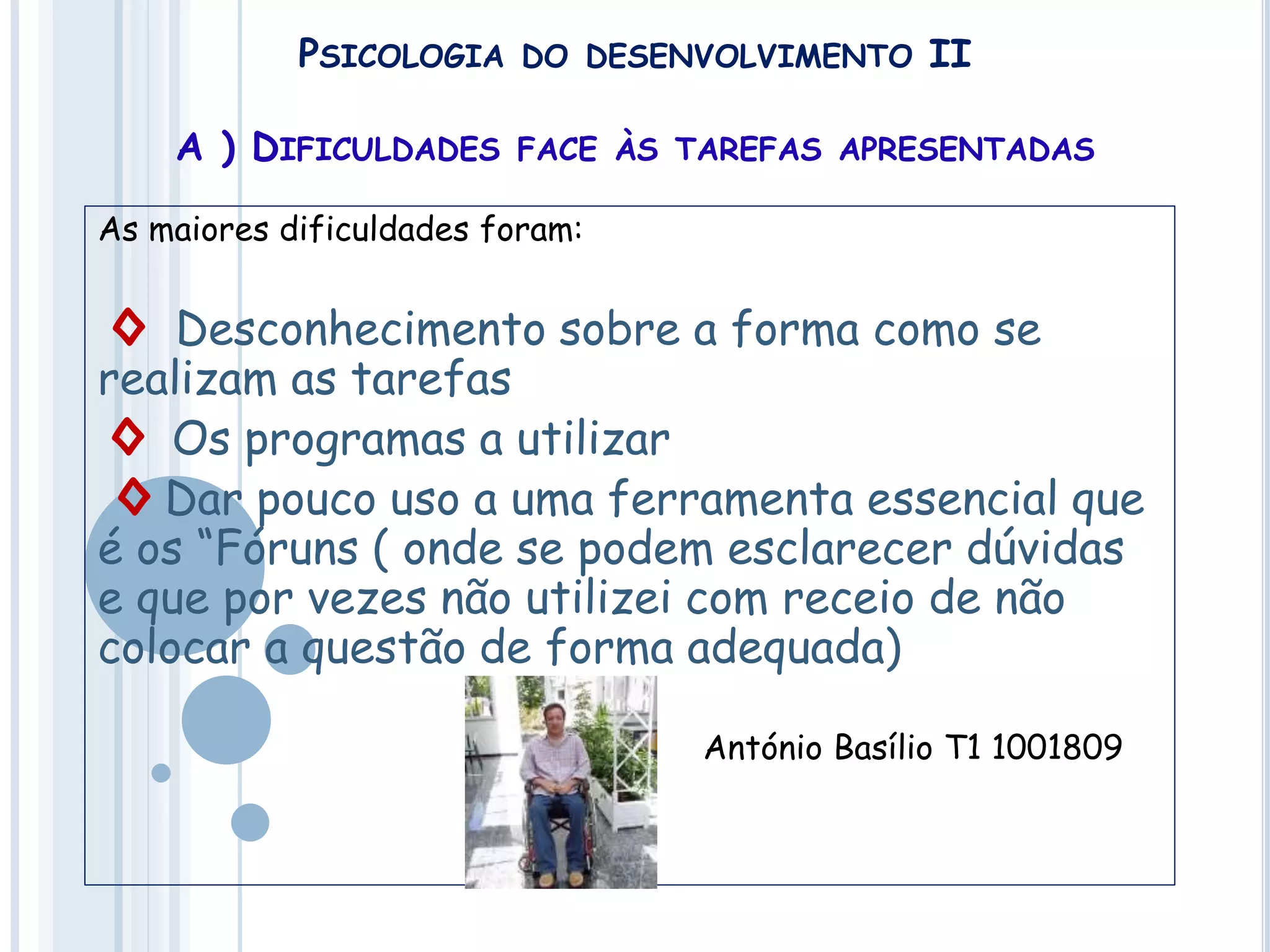 O documento resume as experiências de um aluno em um curso de Psicologia do Desenvolvimento II. As maiores dificuldades enfrentadas foram a falta de familiaridade com as tarefas e ferramentas. Os ganhos de aprendizagem incluíram aprofundar conhecimentos de tópicos do primeiro ano e aprender novas habilidades como mapas conceituais e storytelling digital. Os aspectos mais interessantes foram conhecer novas ferramentas, o ritmo de trabalho e o apoio dos professores, enquanto a repetição de algumas matérias