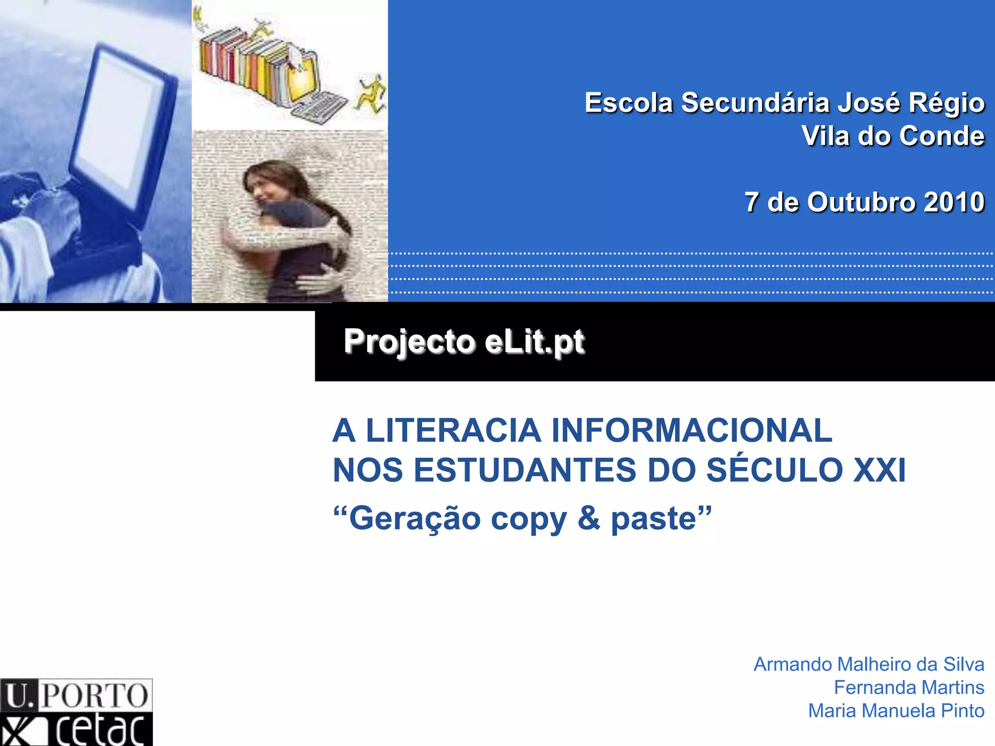 1) O documento descreve o projeto eLit.pt, que estuda a literacia informacional nos estudantes portugueses do século XXI.