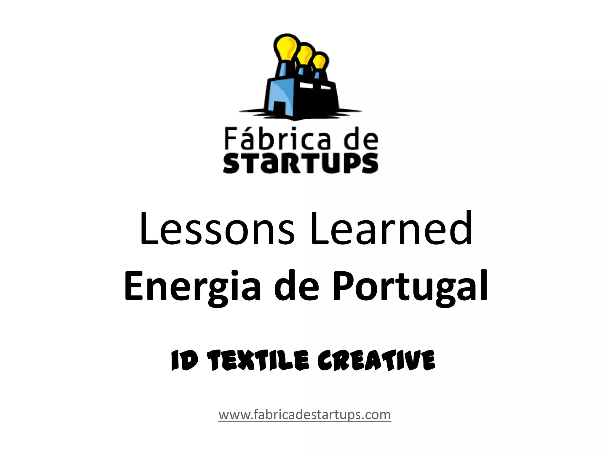 Este documento resume as lições aprendidas e métricas de um projeto de startup de impressão digital têxtil. Contém informações sobre hipóteses testadas e validadas, entrevistas realizadas, respostas a questionários e métricas como aquisição, ativação e retenção de clientes. Também inclui detalhes sobre o modelo de negócios da startup como proposta de valor, segmentos de clientes, canais, atividades, recursos e estrutura de custos.