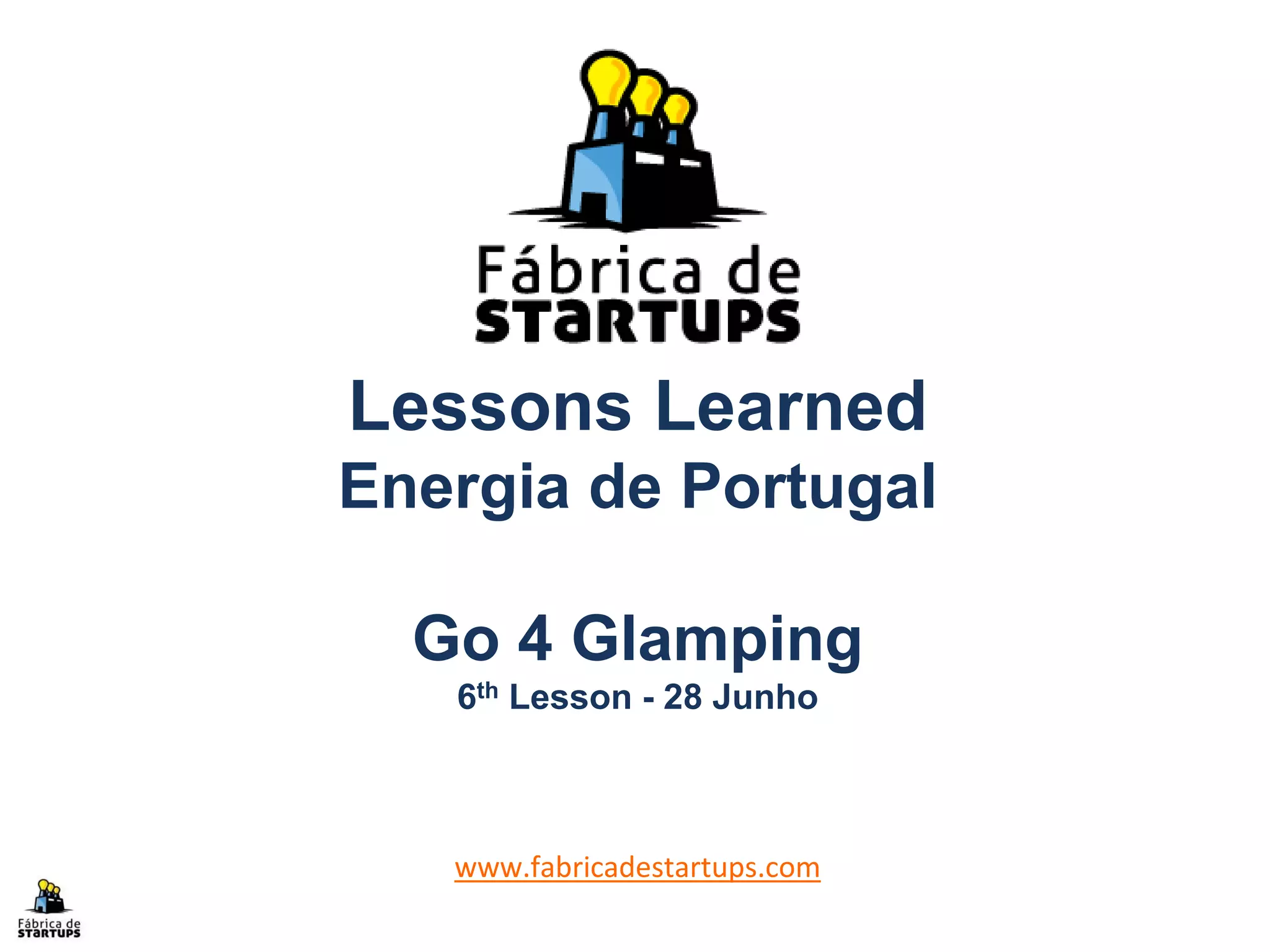 O documento descreve o plano de negócios da empresa Go 4 Glamping, incluindo sua cadeia de valor, organograma, funções de cada cargo, processos de contato com clientes, criação e implementação de soluções, e lições aprendidas.