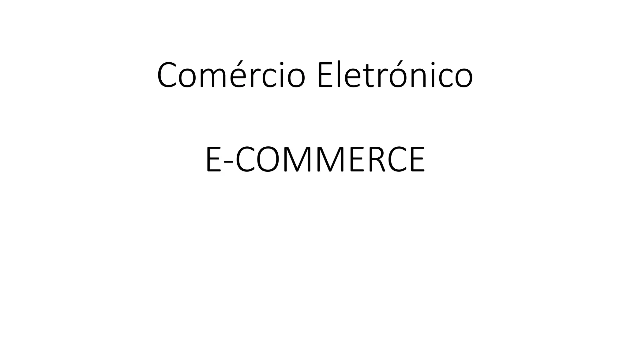 O comércio eletrónico refere-se a transações comerciais realizadas através de componentes eletrônicos, como computadores. Sua evolução começou nos anos 70, passando pelas tecnologias EDI e serviços online, até a revolução da internet nos anos 90, que expandiu enormemente suas possibilidades. Os principais tipos de comércio eletrónico incluem B2B, B2C, C2C, C2B, B2A e C2A, cada um com suas vantagens e desvantagens.